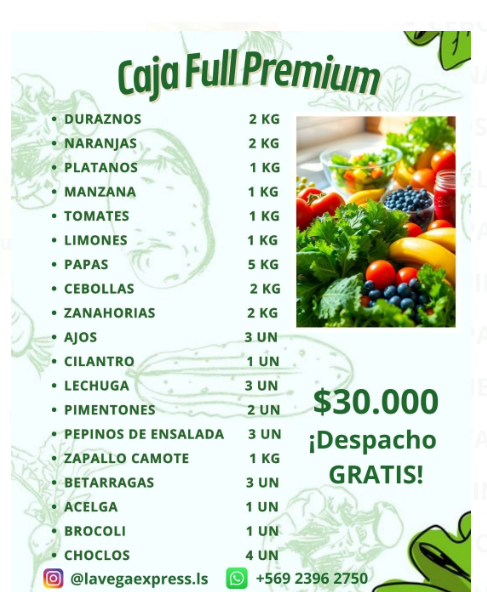 NARANJAS PLATANOS MANZANA TOMATES LIMONES PAPAS CEBOLLAS ZANAHORIAS AJOS CILANTRO LECHUGA PIMENTONES PEPINOS DE ENSALADA ZAPALLO CAMOTE BETARRAGAS ACELGA BROCOLI CHOCLOS